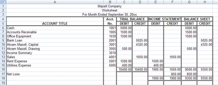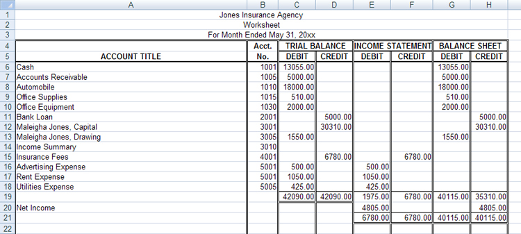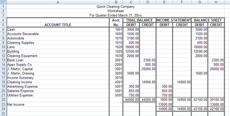 Use the worksheet below to complete an income statement, balance sheet, and statement of owner’s equity. The capital on the balance sheet will be the same as the ending capital on the statement of owner’s equity.