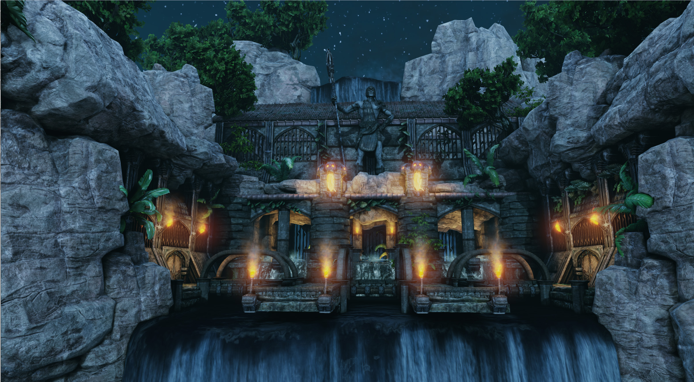Try this tutorial on level design to create a waterfall scene. It seems to be pretty good.
